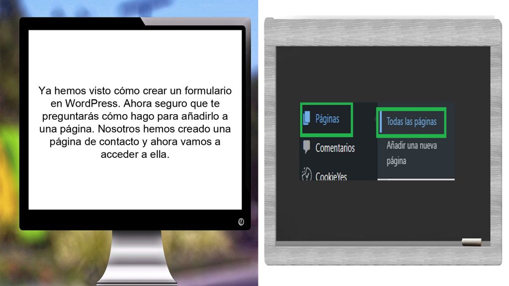 Ya hemos visto cómo crear un formulario en WordPress. Ahora seguro que te preguntarás cómo hago para añadirlo a una página. Nosotros hemos creado una página de contacto y ahora vamos a acceder a ella.
