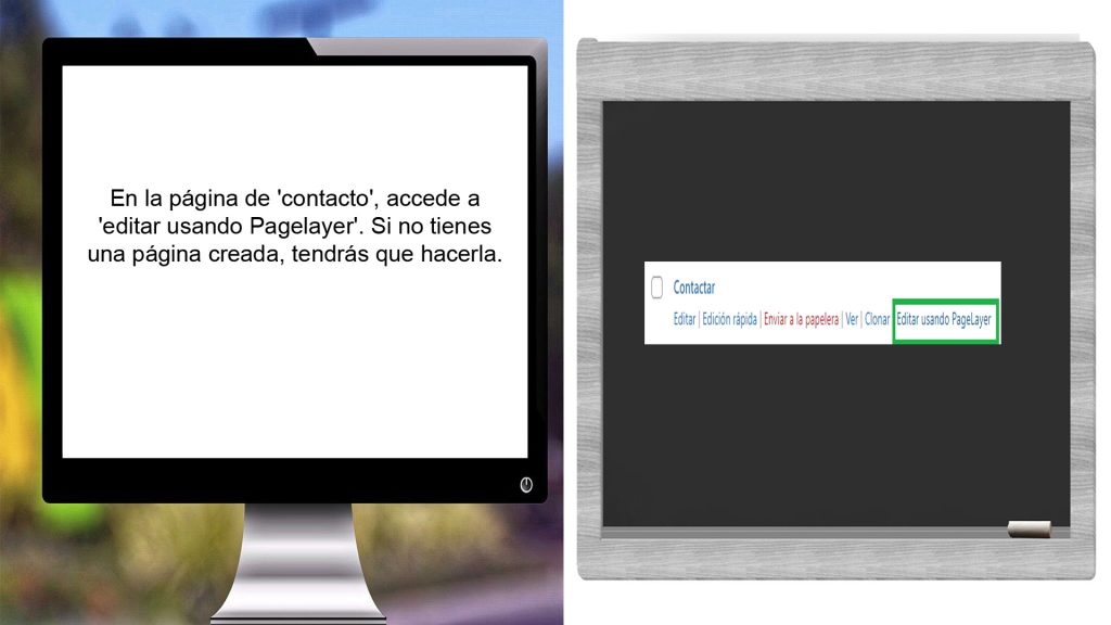 En la página de 'contacto', accede a 'editar usando Pagelayer'. Si no tienes una página creada, tendrás que hacerla.