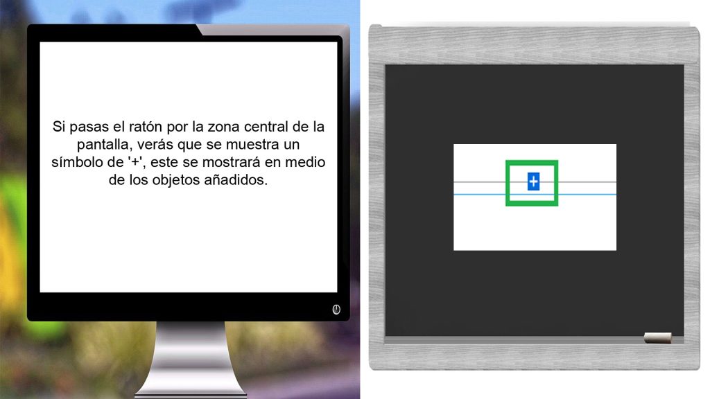 Si pasas el ratón por la zona central de la pantalla, verás que se muestra un símbolo de '+', este se mostrará en medio de los objetos añadidos.