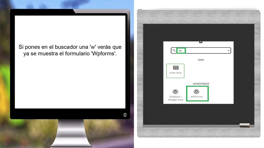 Si pones en el buscador una 'w' verás que ya se muestra el formulario 'Wpforms'.