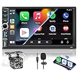 Radio de Coche con Pantalla de 7”, Cámara Trasera y Control por Voz - KMUTZY 2 DIN con CarPlay y Android Auto