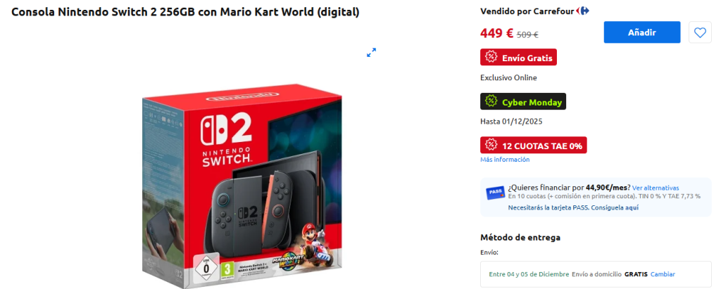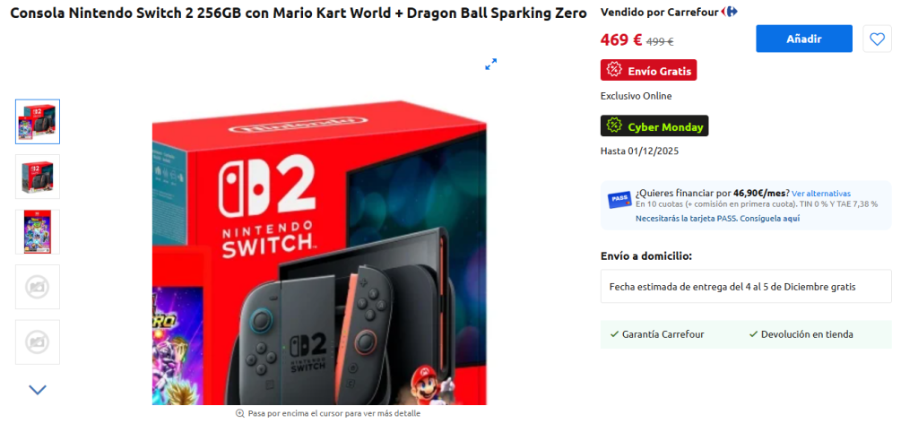Cyber Monday Carrefour 2025: Mejores Ofertas en Consolas y Videojuegos (PS5, Switch 2, Xbox y más)